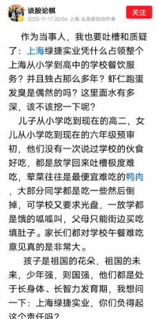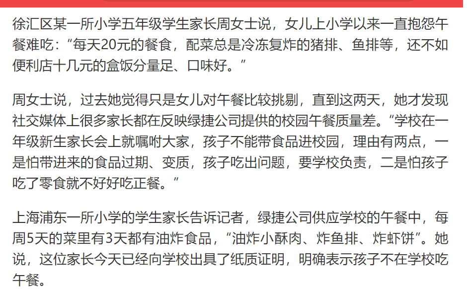 这家企业来头不小,曾被评为上海市名牌企业、上海市著名商标企业、中国团餐百强企业以及全国商业质量奖获奖单位等。然而,企业规模大并不代表提供的餐品质量就高,仍有许多家长和学生吐槽饭菜难吃。