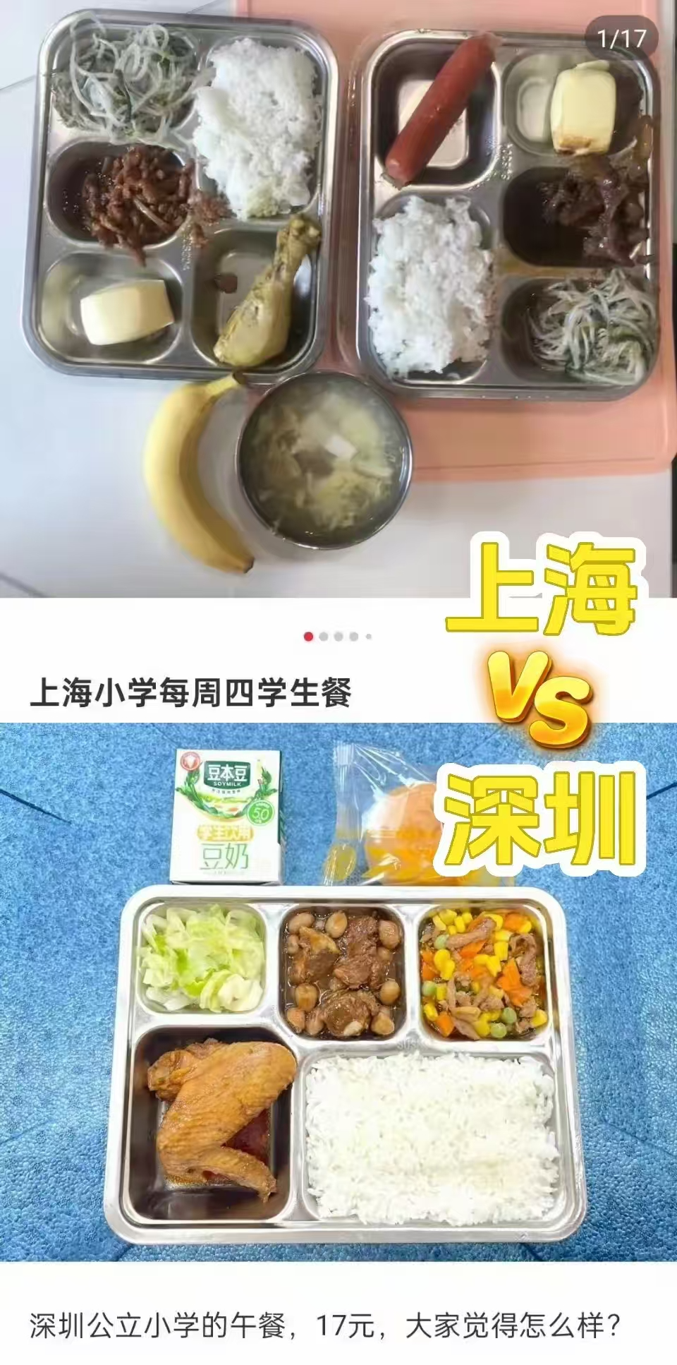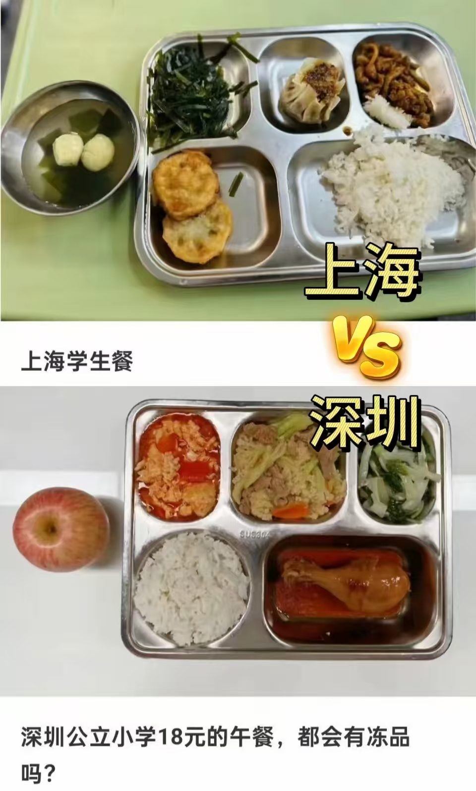 这之后,有人将深圳的学生餐拿出来做了对比。