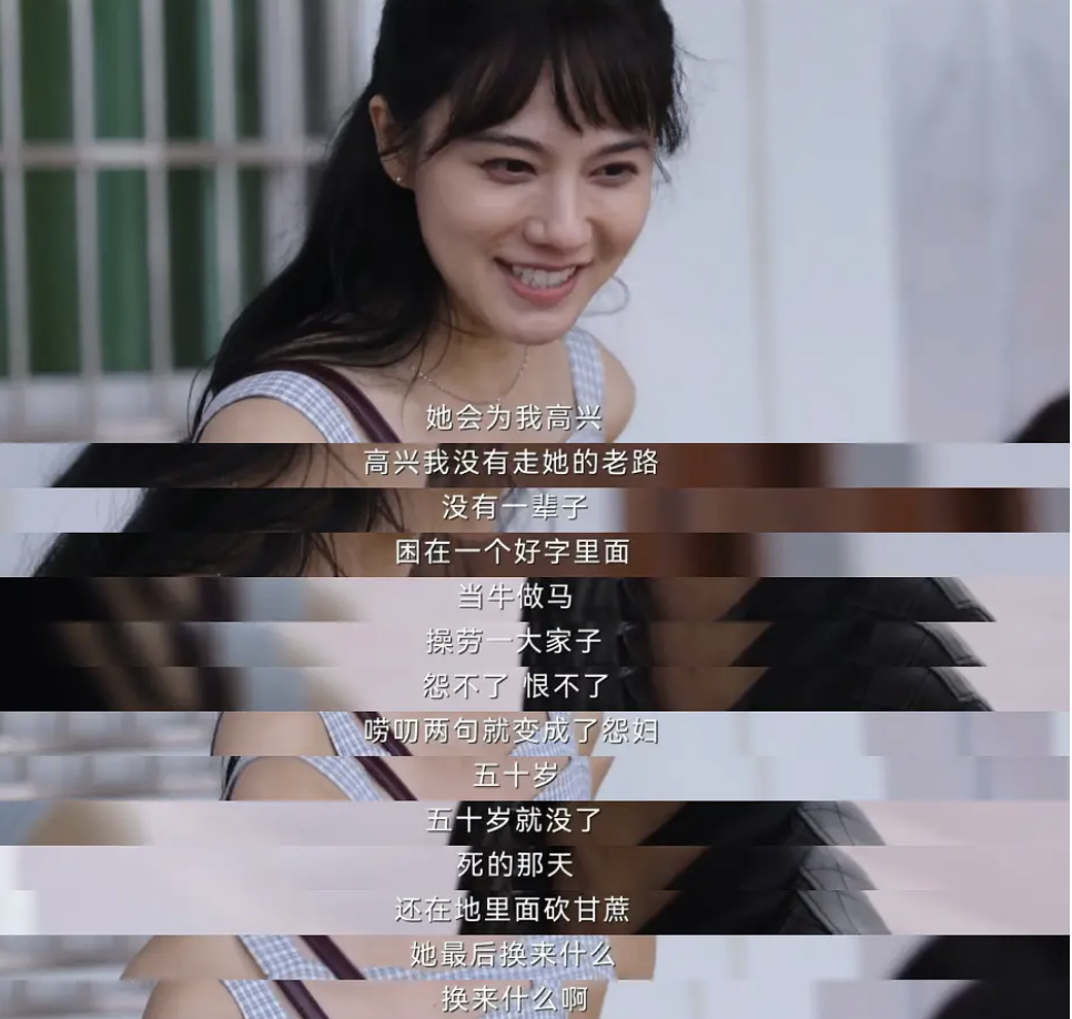 然而,要说这部剧真正的亮点和爆点,那还得是剧中的女二号姜佩瑶。姜佩瑶在这部剧中只凭一场戏就征服了无数观众。那就是她考上大专,快毕业时候的那场戏。徐庆利知道田宝珍快毕业了,他跑到学校来找她,还想娶她,还想让她回家。可是当时田宝珍说的是:“所有人都说我是一个坏女人,可是我没关系,我不在乎,我只想过自己的好日子。”而当徐庆利回答:“你想想你阿妈,她是多么得体,多么好的一个女人!”时,姜佩瑶饰演的田宝珍直接杀疯了,她说道:“我不想只活着一个好字里面,我不想跟我妈一样,50岁就死了,临死之前还在甘蔗地里砍甘蔗!”