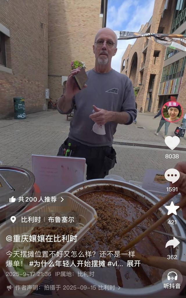 在比利时布鲁塞尔大学城周边的热闹集市上,每周二和周六都会飘起熟悉的重庆味道——37岁的重庆女子汪莉支起摊位,将一碗碗热气腾腾的豌杂面端到顾客面前。这个原本为缓解家庭收入压力的小生意,不仅让她实现了时间自由,更让重庆美食在异国他乡掀起热潮。