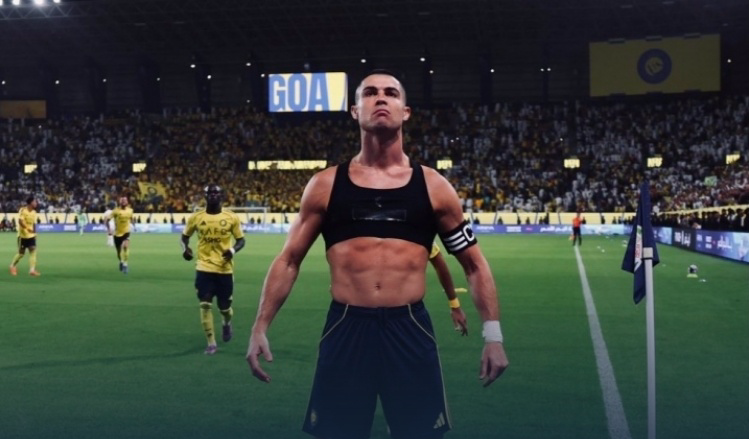 进球后C罗霸气脱衣庆祝,这是他本赛季沙特联的第5粒进球,也是他职业生涯的第949球,距离950球大关仅差一步。