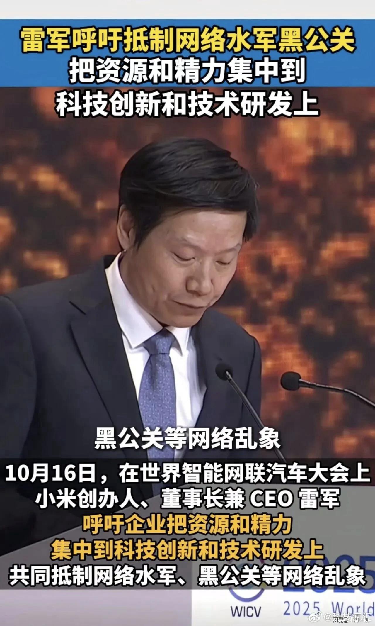 但沉默并未平息质疑。10月16日演讲中“抵制网络水军”的表态,反而加速了其形象的崩塌。从“和用户交朋友”到被指“水军控评”,雷军的人设变迁暴露出中国企业家在流量时代的生存困境:当企业规模尚小时,亲民形象是加分项;但成为巨头后,涉及生命安全、劳动权益等复杂议题时,同一种策略可能适得其反。
