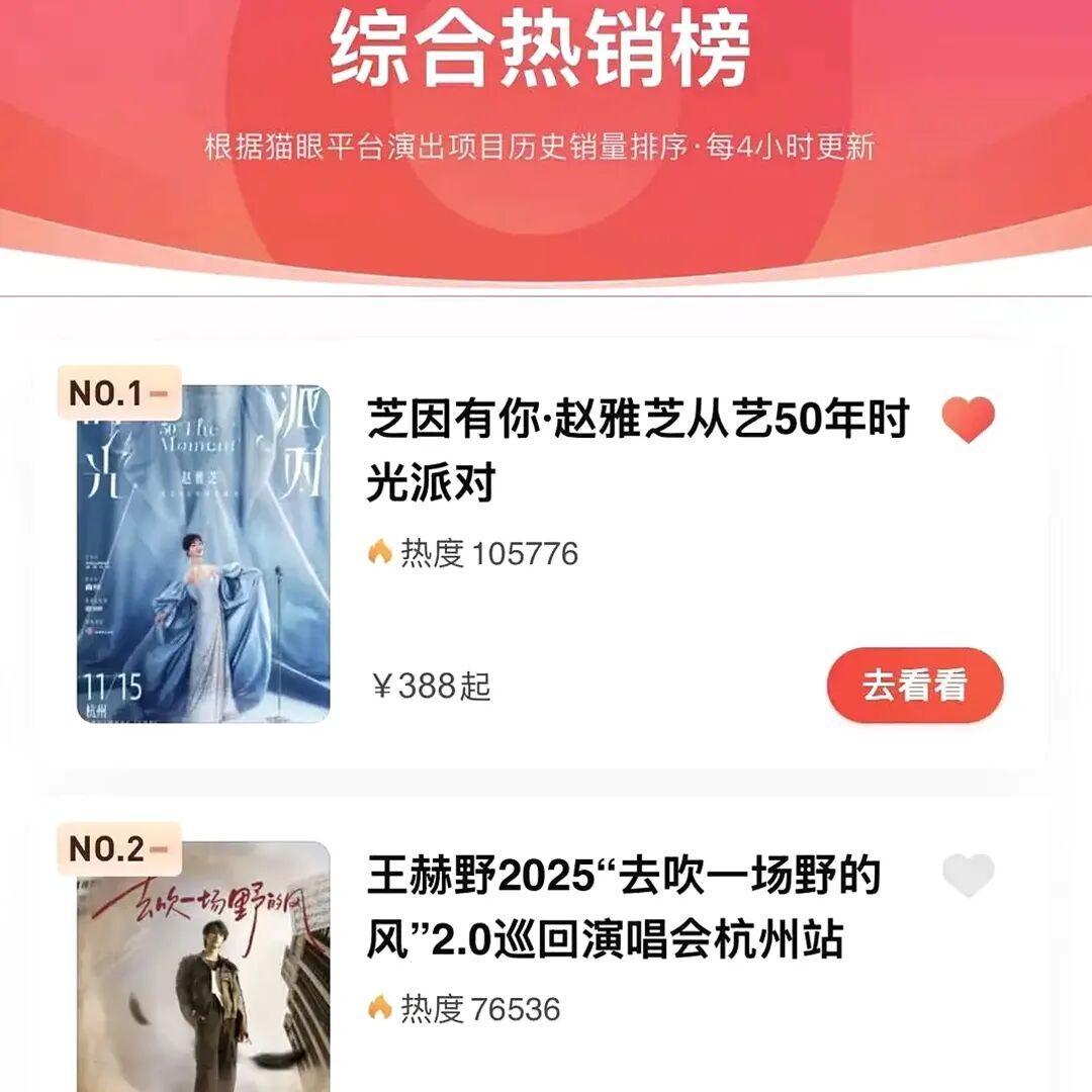 对比同期在内地举办巡回演唱会的香港天后林忆莲(最低票价280元,最高980元),赵雅芝这场以"从艺50年时光派对"为主题的生日会定价策略显得尤为突出。尽管赵雅芝的代表作主要集中在影视领域(《上海滩》《千年等一回》等经典影视金曲),但其商业价值显然未受音乐领域成就限制。有网友质疑:"这样的定价是否合理?粉丝消费是否过于冲动?"