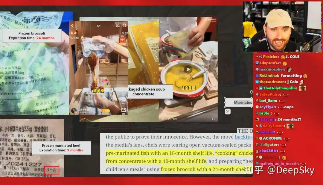 随着西贝开放后厨,探访者发现了各种预制菜包、存放两年的西兰花,甚至还有一年前的羊腿。这些发现让美国网友惊呼:“精彩!电影级情节!”