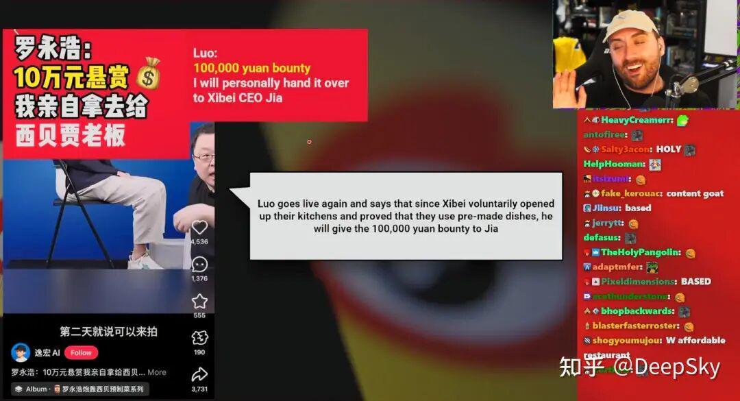 更有甚者,罗永浩表示要给贾老板10万元,作为奖励其证明西贝使用预制菜。这一举动赢得了美国网友的赞叹:“真男人!”