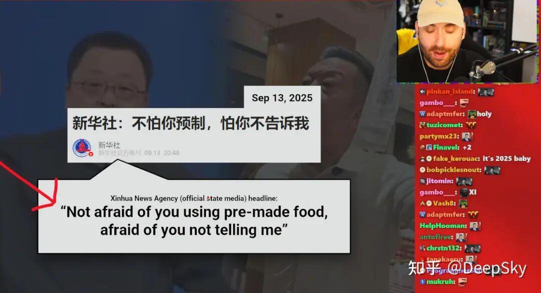 随后,卫健委公布了《预制菜食品安全国家标准》草案。这一法规的出台让美国吃瓜群众疯狂敲击键盘,敲出“W”(代指“Win”,表示庆祝或支持)。弹幕中,甚至有人开始引申到“体制”:“天呢,是共产主义!”