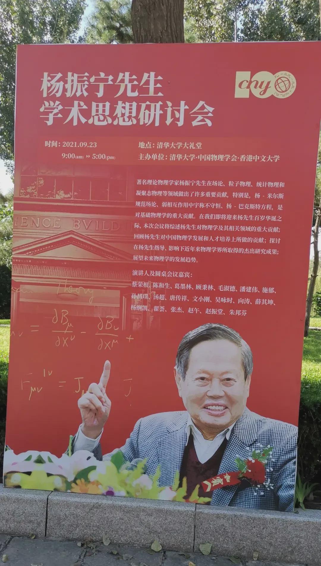 在学校主干道看到的杨振宁先生的学术研讨会展板