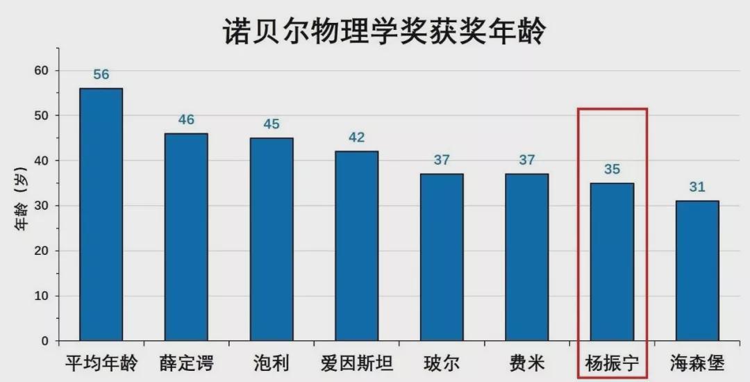 诺贝尔物理学奖的平均获奖年龄56岁,而杨振宁先生获奖时年仅35岁。如今的我33岁相当于我后年拿诺奖...再看杨振宁先生的诺奖震撼又上了一层。