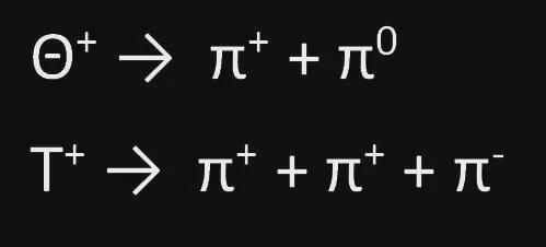 简单说就是,人们发现有θ和τ这两种奇异的粒子,在衰变过程中宇称不同:θ粒子衰变会产生2个π介子,宇称为偶;而τ粒子衰变会产生3个π介子,宇称为奇。
