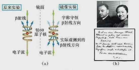 如果宇称是守恒的,镜子里外是一样的,那它俩的电子都应该往上飞。然而实际测出来的是,它俩的电子一个往上飞、一个往下飞。