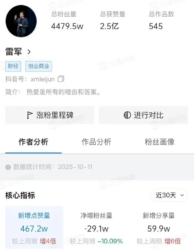 军的个人社交媒体账号半个月掉粉超30万,小米汽车直播间一度被负面评论淹没。