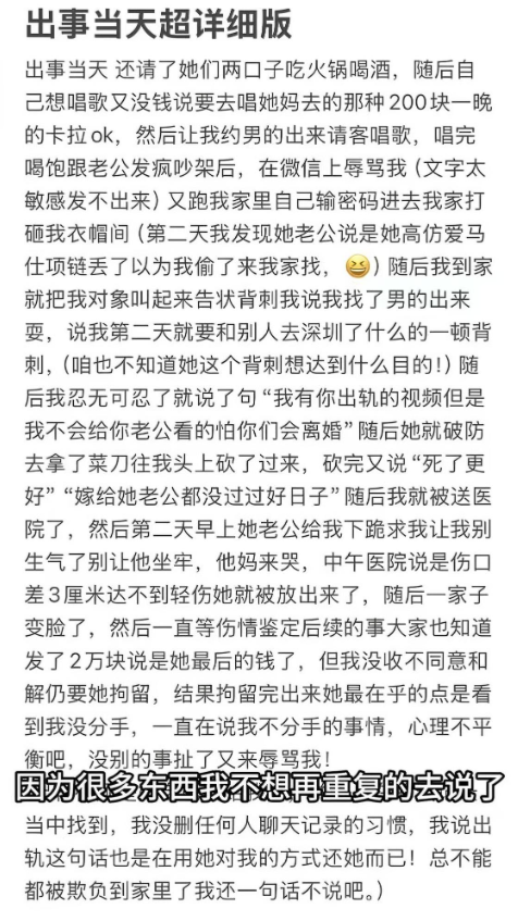 她发布了一篇长文,怒斥闺蜜的所作所为,还揭露了闺蜜不为人知的一面: