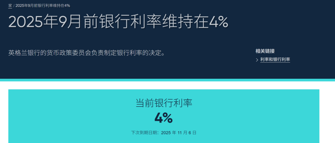北京时间9月18日,英国央行公布最新利率决议,将基准利率维持在4%的水平。在通胀反弹担忧升温的背景下,央行对今年晚些时候是否继续降息未给出明确信号,市场对未来货币政策的预期因此发生调整。