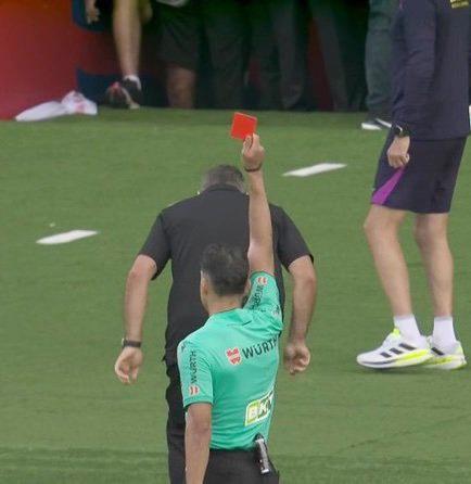 易边再战,巴萨的攻势如潮水般涌来,却迟迟无法打开局面。第61分钟,库巴西扫射破门被吹;第65分钟,拉什福德门前滑门而过。随后,弗里克大手一挥,在最后15分钟连换两人,亚马尔和佩德里被提前保护下场,毕竟下周还有欧冠和国家德比等着他们。看来,弗里克只想拿一分。然而,在第90分钟,场上出现争议一幕,弗里克因抗议判罚被红牌罚下。
