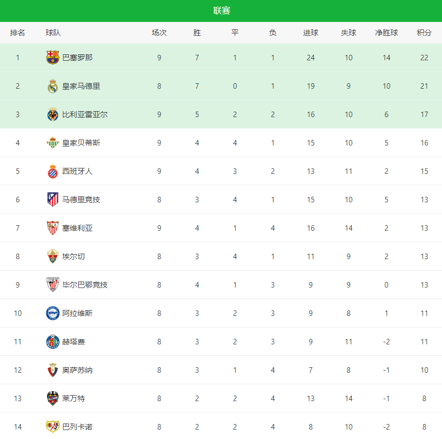 最终,巴萨多赛一场,反超皇马登顶西甲积分榜首位。
