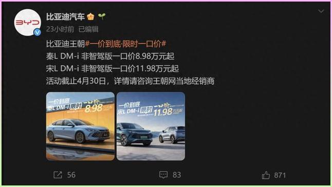 比亚迪再放大招:4.98万补贴价震撼市场,Model Y车主直呼沉默!