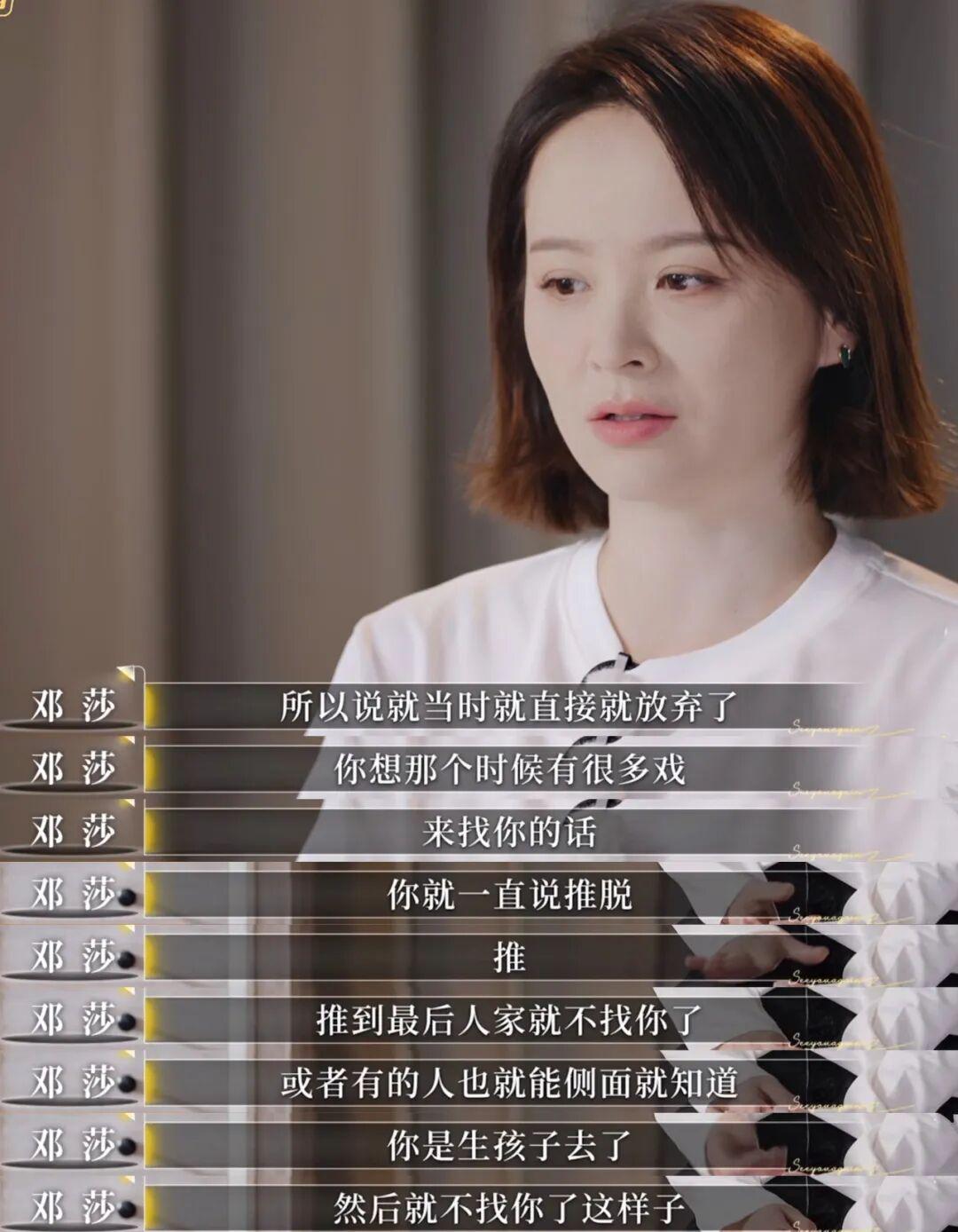 更不可思议的是,邓莎竟一直觉得自己如果没有早婚早孕,事业一定会更好。
