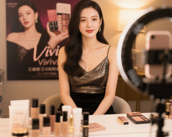 她一边熟练地用着各种昂贵的化妆品,一边用甜美的声音和粉丝互动。屏幕上,点赞和礼物像潮水一样涌来。
