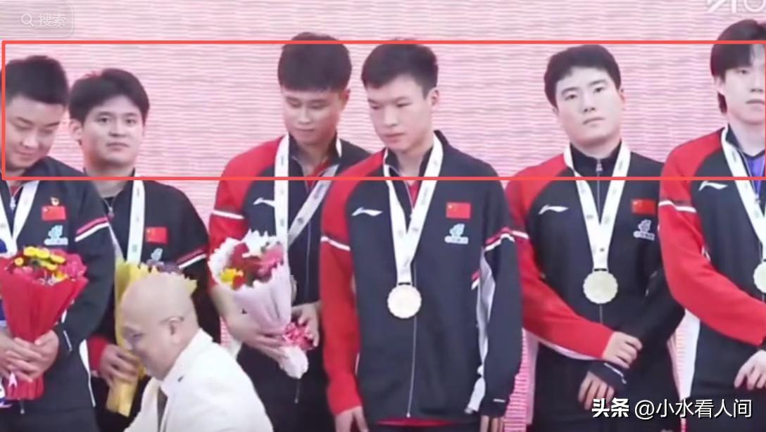 而且林诗栋还被颁奖的花臭到表情失控,队员们个个脸上写着“快点结束吧”。