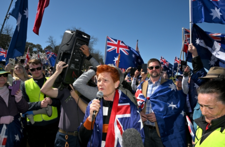 这种情绪的蔓延,直接推动了极右翼势力的崛起。澳大利亚一国党(One Nation)选民支持率自5月大选以来增长一倍多,达到14%,而两大主流政党支持率则双双下滑。该党领袖汉森在演讲中重提“被亚洲人淹没”的争议言论,右翼团体更是在游行中针对华人等移民群体发表极端言论,高呼“华人印度人滚出澳洲”的口号。