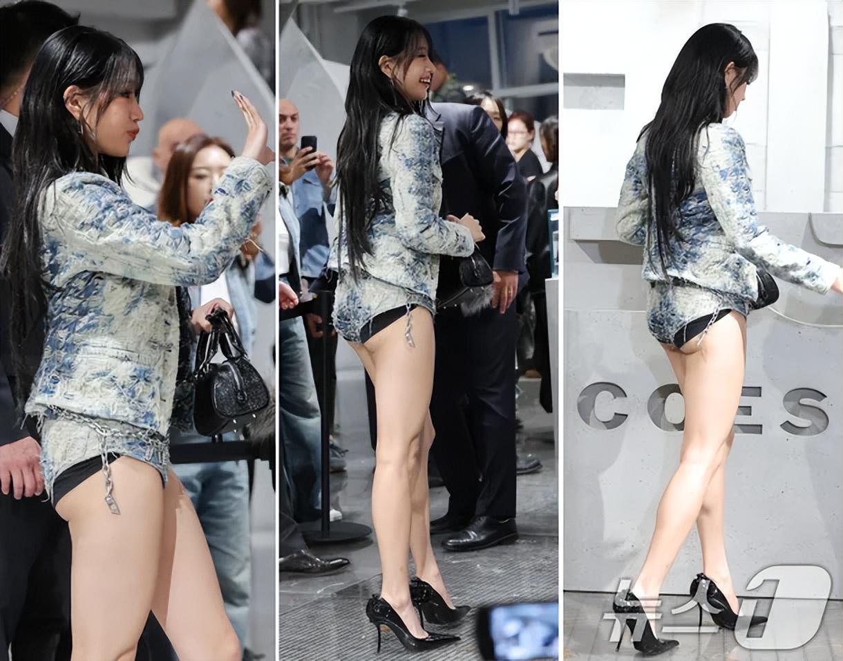 10月17日,首尔龙山区汉南洞的DIESEL卖场为庆祝重张,举办了一场明星云集的拍照活动。尽管朴宰范、MIRAE成员李皋媛等艺人悉数到场,但NATTY的“破格”装扮却成为全场焦点。她以撕裂纹理牛仔夹克搭配超短运动热裤和黑色运动背心亮相,其中热裤长度甚至短于内裤,臀线几乎完全暴露,瞬间吸引所有媒体镜头。