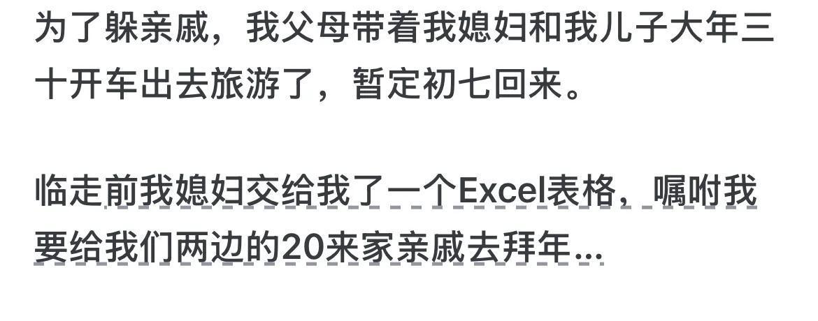 经济压力和家庭责任分配不均,同样会引发春节矛盾。有网友提到,丈夫父亲要求他们赡养12岁的表弟,而他们自己还背负着百万房贷、未买车生娃,经济压力巨大。这种超出能力范围的要求,让她与丈夫大吵一架,甚至半夜回娘家。