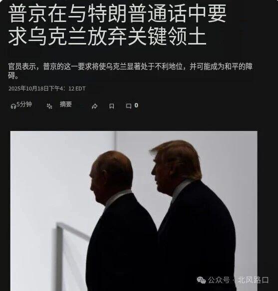 10月17日,泽连斯基与特朗普在白宫会晤,这场会晤不是对乌克兰的支持,而是特朗普再次要求乌克兰割地投降。