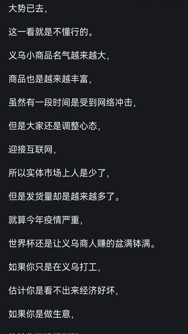 近期,网络上关于“义乌市场热度下降”的讨论愈发热烈,不少网友纷纷发表自己的看法,揭示了这一现象背后的真实原因与行业变迁。那么,义乌市场究竟怎么了?为何会给人一种“大势已去”的感觉?