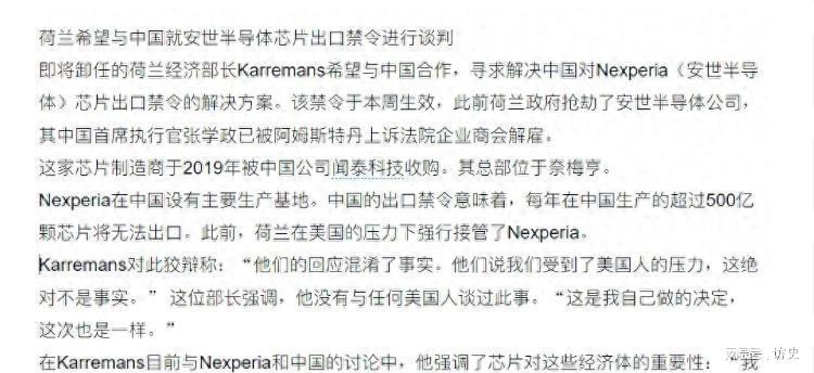 9月30日,荷兰经济事务与气候政策部依据1952年《商品供应法》,对中资安世半导体发出禁令,要求其海外资产与业务维持现状,实质上剥夺了中国股东的控制权。然而,制裁的代价迅速通过供应链传导。