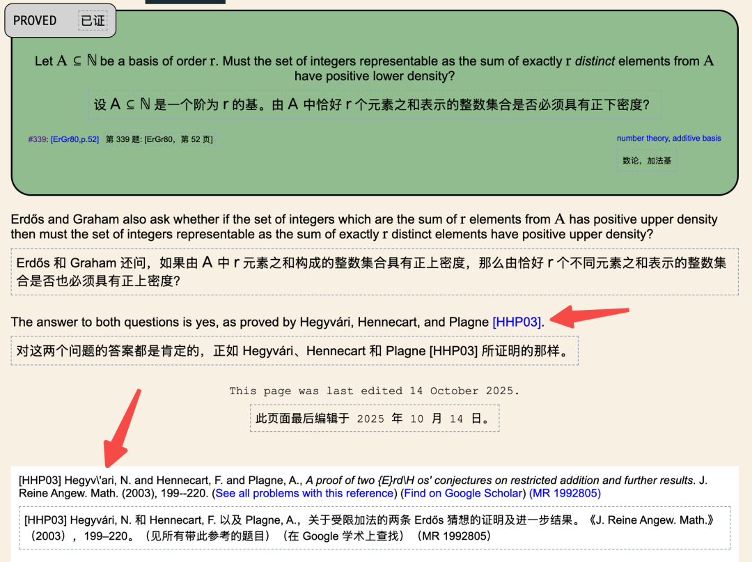 比如上面提到的问题339,GPT-5 Pro直接从浩如烟海的论文里找到了「答案」。
