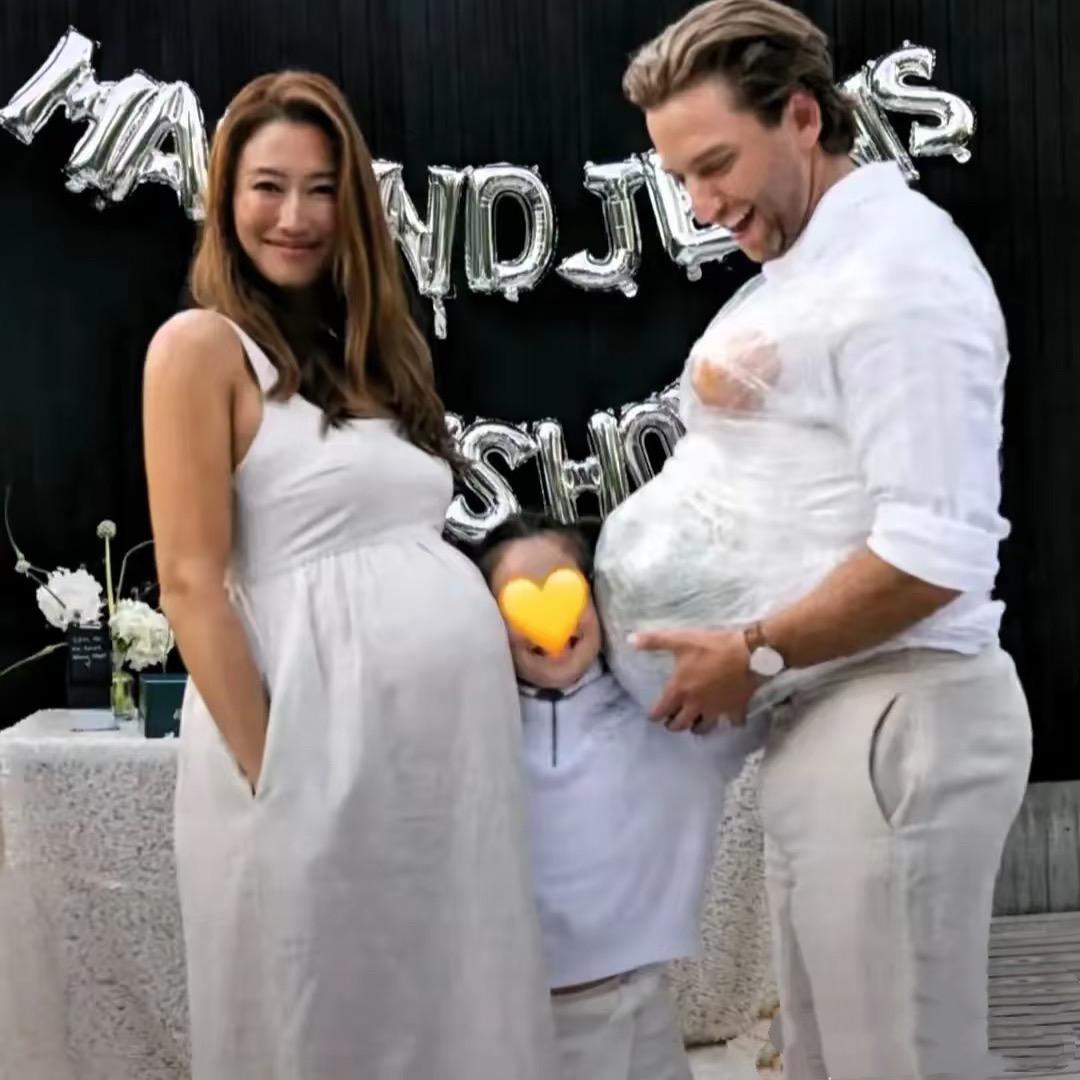 谢婷婷对小生命的到来充满期待,儿子还未出生时,她就精心策划了一场“迎婴派对”。男友Mathew也幽默地模仿起大肚子,两人将女儿挤在中间,画面温馨而有趣。