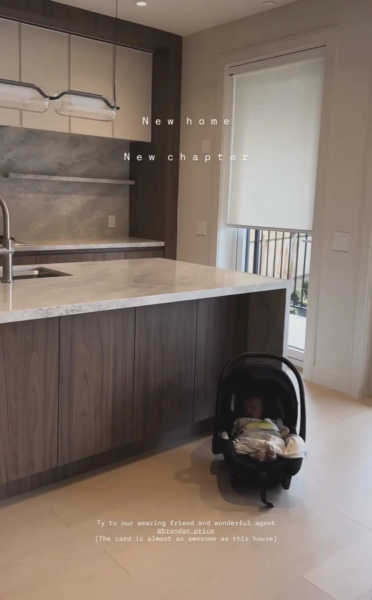 搬入新家后,谢婷婷将儿子放在摇篮里,让他感受新家的温馨。家里装修现代化,开放式厨房设计符合现代年轻人的审美。