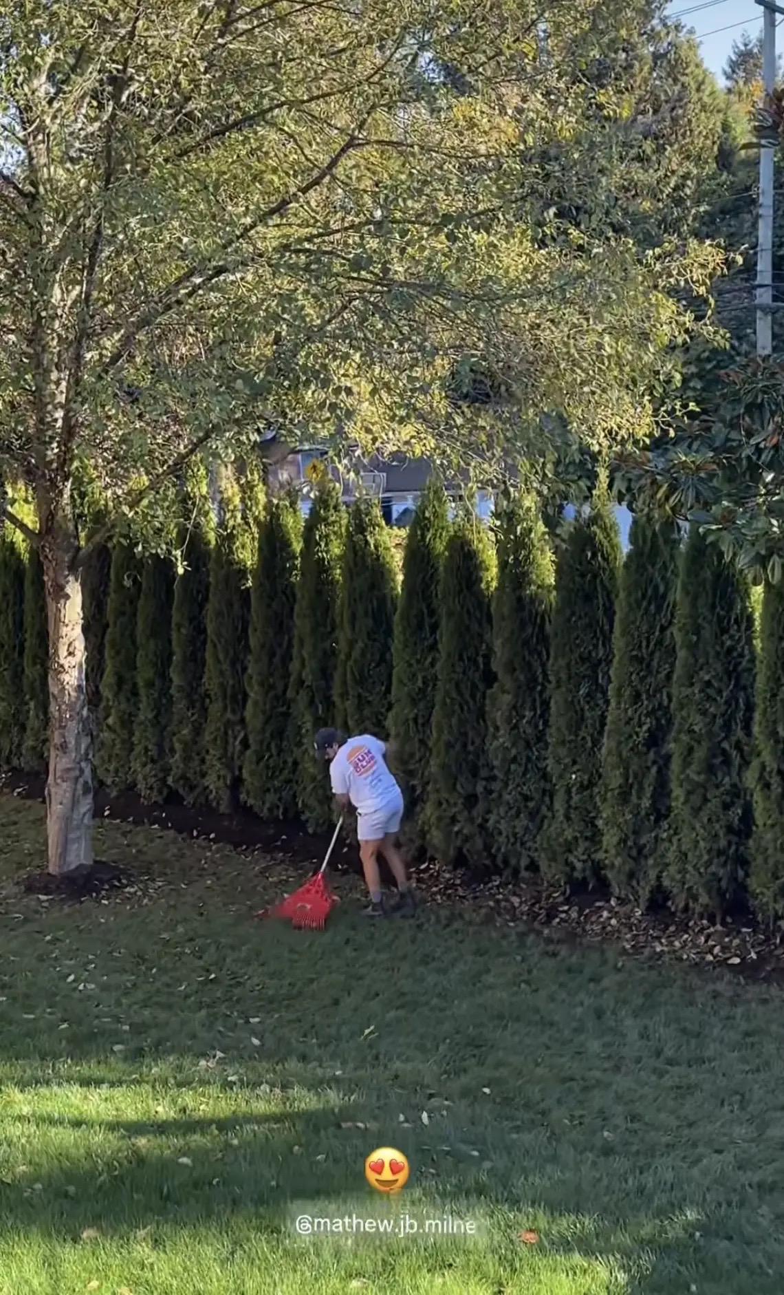 谢婷婷的男友Mathew变身园丁,清理花园的落叶。有这样一个私密花园的独栋别墅,真是让人羡慕不已。而这还只是谢婷婷新房的一角。