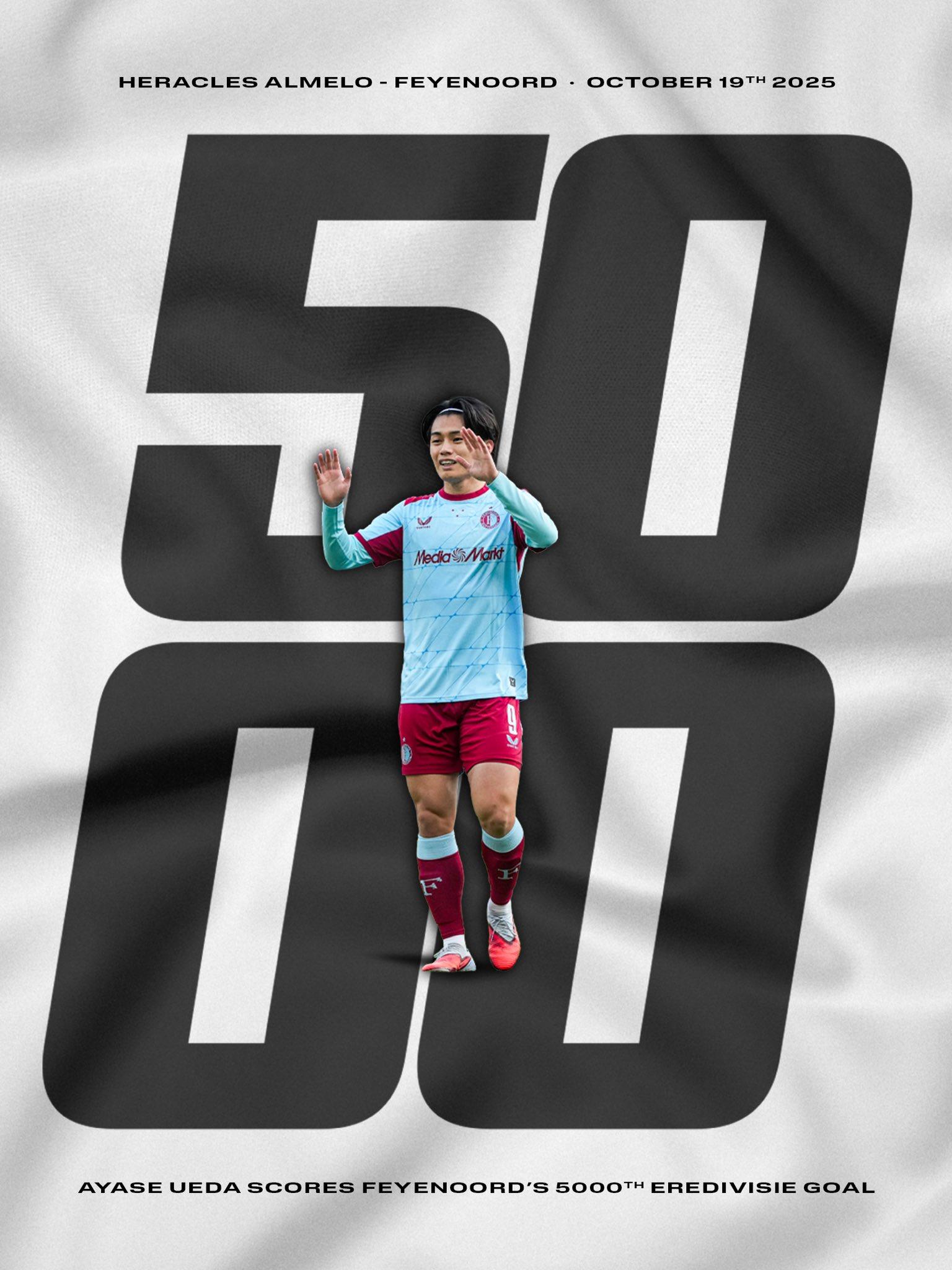 值得一提的是,上田绮世在比赛中打入的第二粒进球,还具有特殊的历史意义——这是费耶诺德队在荷甲联赛中的第5000粒进球,无疑为这场大胜增添了更多的纪念价值。