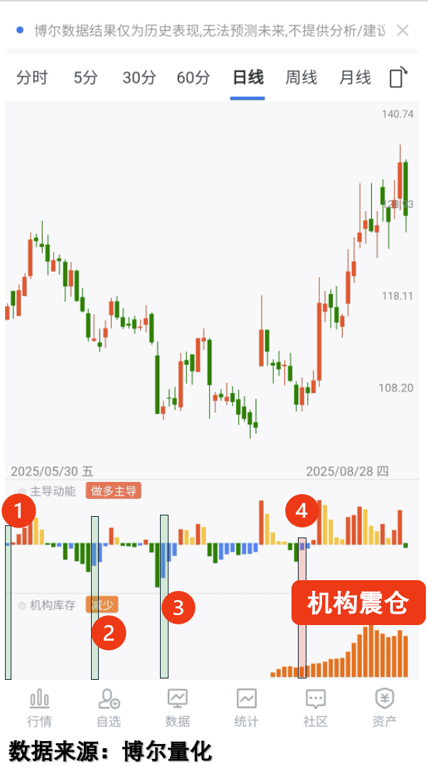 某股票的走势极具教育意义:前三次反弹均为陷阱,第四次才真正启动。传统技术分析在此完全失效,但交易行为数据提前揭示了机构震仓特征——蓝色回补伴随橙色库存活跃,与前三次散户自发回补形成鲜明对比。