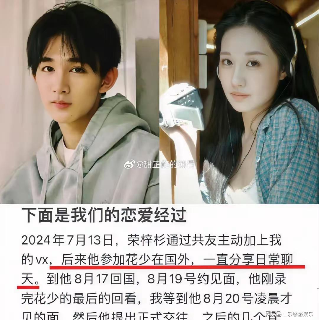 据李禹熹发文梳理,两人于2024年7月经共同好友介绍添加微信,次月确立恋爱关系。恋爱初期关系稳定,但三个月后荣梓杉开始实施冷暴力,导致李禹熹确诊中度抑郁与焦虑。更令其震惊的是,通过多方查证发现荣梓杉在此期间与至少三名女性存在暧昧关系,甚至以工作为由隐瞒与其他女性跨年出行的事实。