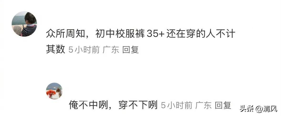 ‘哈哈哈,懂得都懂,[doge]哈哈哈,懂得都懂,我把校服裤当秋天的家居服穿,穿出去都没有问题,即使屁股那块磨得油光澄亮’——这话说得既幽默又真实。在广东,衣服的穿着方式就是这么随意又实用。