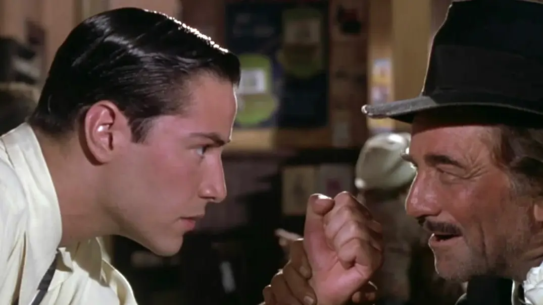斯蒂芬·赫瑞克执导的这部科幻喜剧中,基努与亚历克斯·温特饰演未来摇滚明星比尔和泰德。当时间旅行者鲁弗斯(乔治·卡林饰)带他们穿越历史时,苏格拉底、拿破仑等历史人物的搞笑互动构建了一个荒诞时空。影片改编自单口喜剧段子,基努的青春活力与历史名人的严肃形象形成强烈反差,证明其喜剧天赋早在动作片时代前就已崭露头角。
