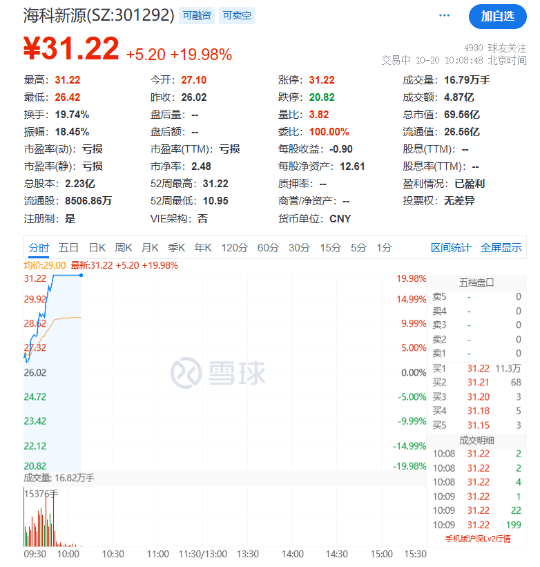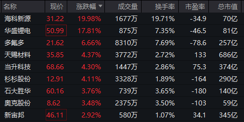 锂电池与固态电池概念股集体走强,海科新源以20%涨幅领涨,华盛锂电、多氟多、天赐材料等跟涨。消息面上,奇瑞汽车在2025全球创新大会宣布实现固态电池全产业链技术突破,其犀牛S全固态电池模组装车后可使电动车续航提升至1200-1300公里,较现有产品提升近一倍。