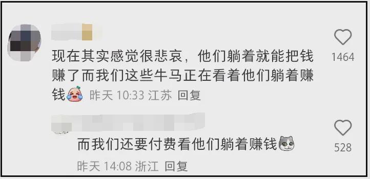 《向往》当初是因为有烟火气受到追捧,但随着热度越来越高,反而慢慢脱离生活,还暴露了明星跟普通人的生活差距——牛马都在为生存挣扎,回家看个治愈系综艺,发现明星已经解决温饱,开始追求精神世界的丰富,还要你付费看他们不用干活,轻松把钱赚,难怪口碑翻车!