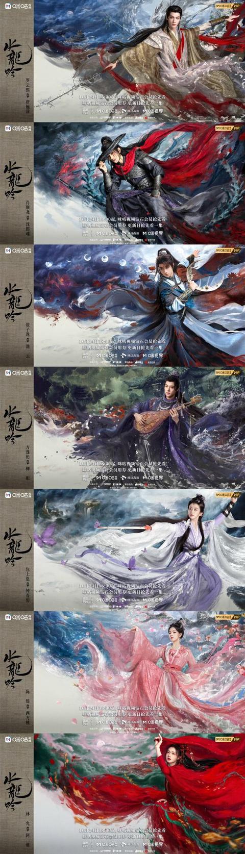 《水龙吟》以一场惊心动魄的灭门血案为开篇,将异境高手唐俪辞(罗云熙 饰)卷入纷繁复杂的江湖漩涡。唐俪辞孤身闯入这混沌的江湖世界,历经情义与信念的双重考验,最终从一名超然物外的局外人,成长为心怀天下苍生的江湖守护者。20日,该剧正式发布了全阵容主角单人海报,罗云熙饰演的唐俪辞雍容华贵,温润如玉,神秘中透露出侠者的非凡气度;肖顺尧饰演的沈郎魂则刀锋凌厉,气势逼人;敖子逸将池云的潇洒不羁演绎得淋漓尽致,尽显少年英气;方逸伦饰演的柳眼身着紫袍,月下独奏琵琶,别有一番韵味……整组海报以“形神合一,衣冠载道”为美学理念,将服饰细节、兵器特质、角色神态与场景意境完美融合,勾勒出一幅幅生动鲜活的江湖众生相。