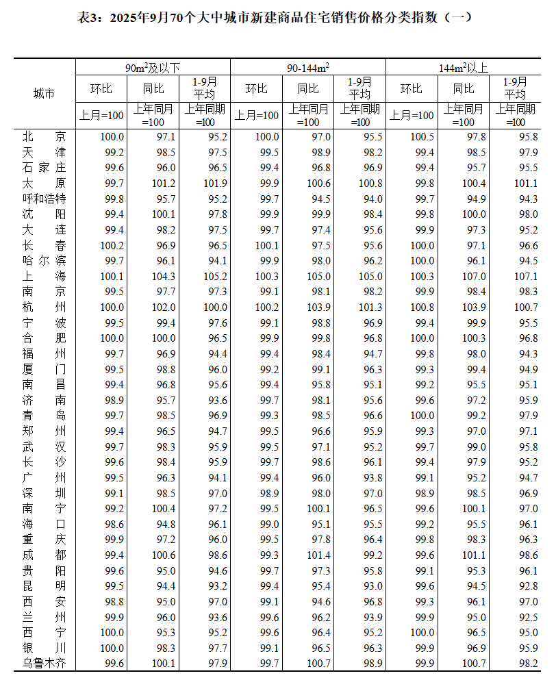 10月20日,国家统计局发布最新数据显示,2025年9月全国70个大中城市商品住宅销售价格延续调整态势,其中新房价格环比跌幅创11个月新高,二三线城市二手房价格环比跌幅进一步扩大。