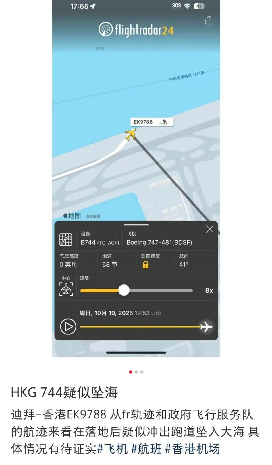今日一早,有网友在社交媒体发帖称,一架从迪拜飞往中国香港的货机,在降落香港国际机场时偏离跑道,发生坠海事故。这一消息迅速引发了广泛关注。