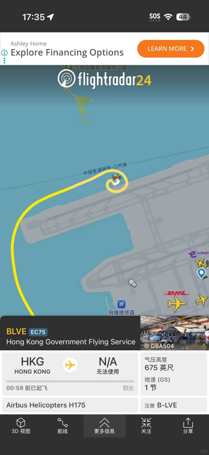 航班于凌晨3时53分抵达香港,计划使用香港国际机场北跑道07L完成降落。