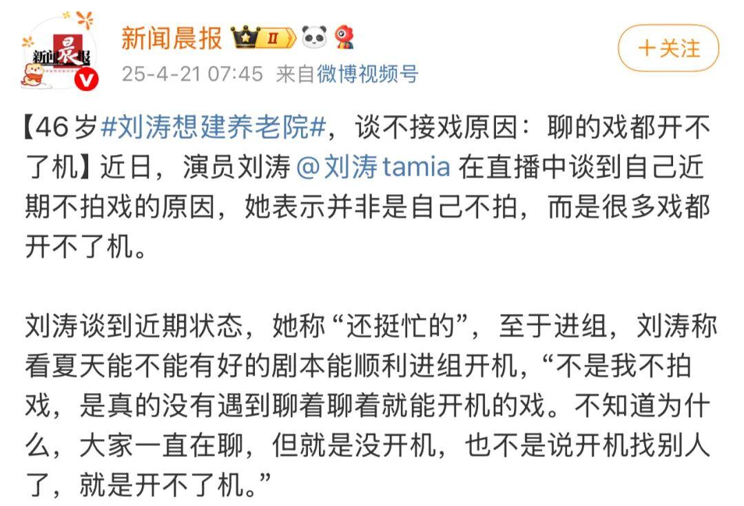 面对这种情况,姐自己也曾在直播中无奈坦言:“不是自己不拍戏,而是很多戏都开不了机。”