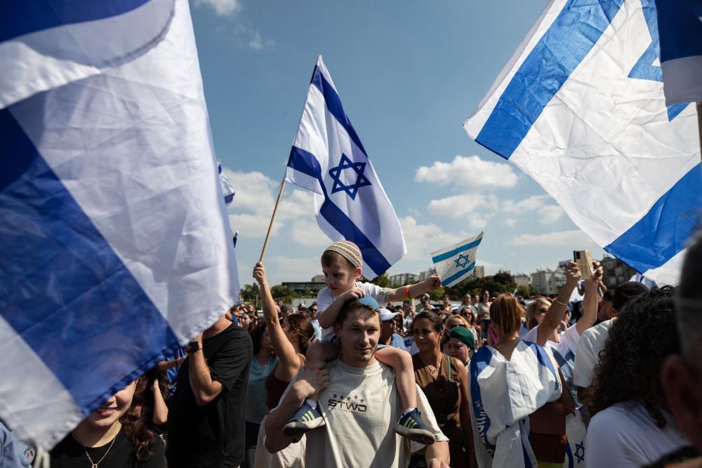 10月13日,人们庆祝搭载获释以方被扣押人员的直升机抵达以色列佩塔提克瓦的一所医院(新华社记者陈君清摄)