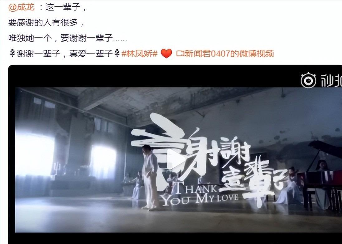 2018的七夕夜,成龙借周杰伦作曲的《谢谢一辈子》公开表白:“一定是我付出的少,她付出的多”。