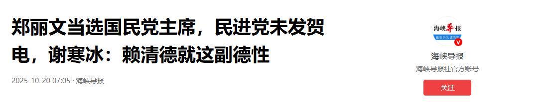 谢寒冰的批评并非空穴来风。赖清德“不装了”的政治风格,在其执政后愈发明显。2019年,时任台当局“行政院长”的赖清德曾讽刺韩国瑜“卖身不卖农产品”,被谢寒冰反呛“进新潮流办公室、小英官邸,卖身卖得很勤快”。2025年8月,因记者提问涉及被羁押的民众党前主席柯文哲,赖清德竟在离场时怒瞪记者,引发舆论哗然。