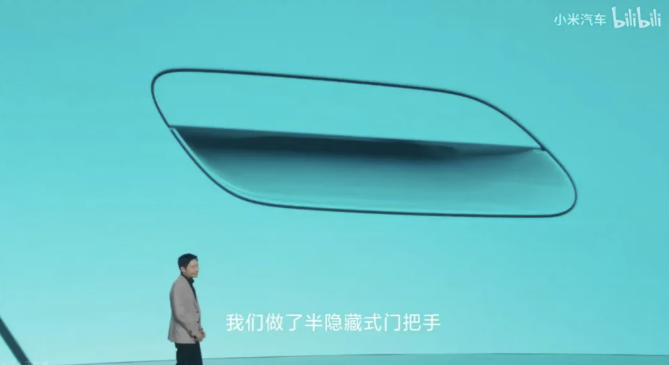 雷军曾介绍,小米SU7的半隐藏式门把手"采用固定式设计,通过按压内部微动开关实现电动解锁,无需物理抬起就能开门"。