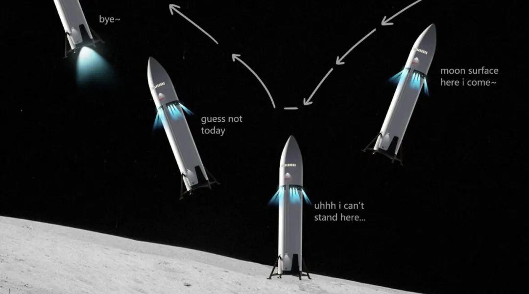 rustybeancake(25赞)分享蓝月亮操作概念图,指出其仅需三次加油(低地球轨道两次,阶梯轨道一次),Mars_is_cheese(28赞)直言该方案「极其复杂且高风险」。mfb-(9赞)反驳称,批评星舰多加油方案者,应以同等标准审视蓝月着陆器的氢系统风险。SalategnohC16(14赞)讽刺这是「所有集群乱局之母」,rustybeancake(3赞)幽默回应:「一人的乱局是他人的解锁技术」。